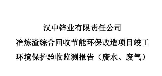 漢中鋅業有限責任公司冶煉渣綜合回收節能環保改造項目竣工環境保護驗收監測報告(廢水、廢氣)