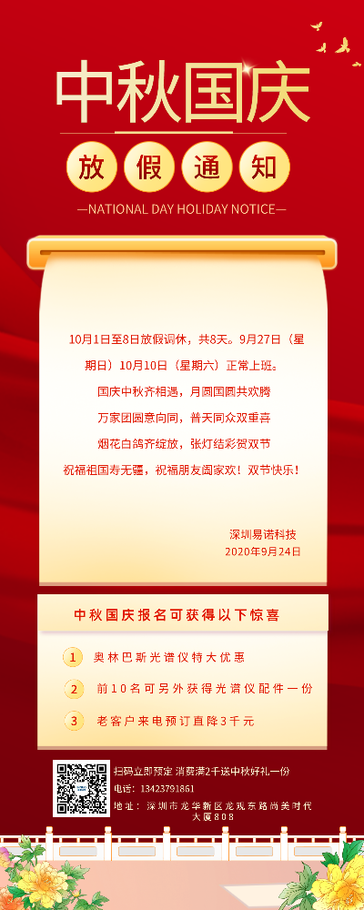 易諾科技十月一日放假安排