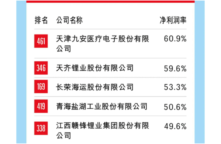 盈利排行,自然少不了鋰資源企業。