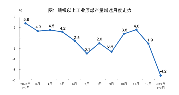 原煤生產有所下降,進口較快增長。1—2月份,規上工業原煤產量7.1億噸,同比下降4.2%。進口煤炭7452萬噸,同比增長22.9%,繼續保持較快增長。