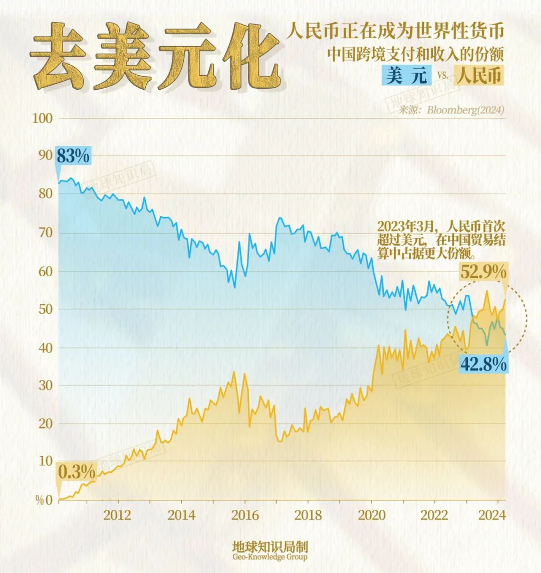 美國憑借其超級大國的綜合實力,維系金融霸權(quán)長達(dá)七十多年。如今中國已成長為世界第二大經(jīng)濟(jì)體,越來越多的國際貿(mào)易使用人民幣來結(jié)算。