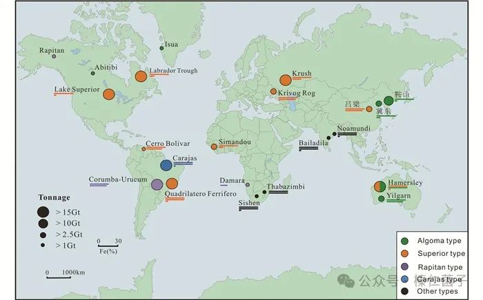 全球著名的前寒武紀(jì)BIF鐵礦床位置及品位,