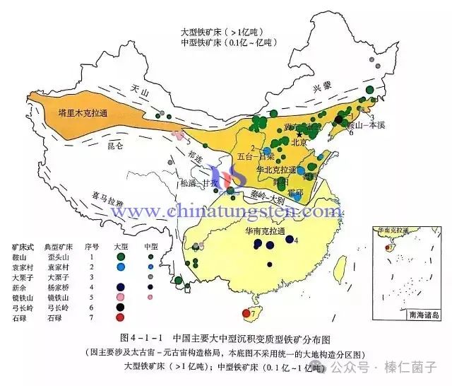 中國(guó)大陸除了華北地區(qū)有少量的“前寒武紀(jì)地層”地層之外,大部分地區(qū)是中新生代才隆起成為陸地的,地表中新生代地層分布范圍廣、面積大。由于古老地層少,賦存于古老地層中的鐵礦資源量較少,導(dǎo)致中國(guó)“缺鐵”的礦產(chǎn)資源特點(diǎn)。