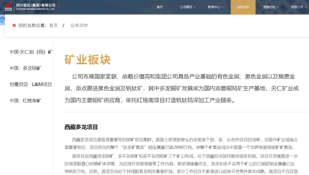 作為蜀道集團(tuán)礦業(yè)板塊的核心直屬企業(yè),宏達(dá)集團(tuán)在全球礦業(yè)資源投資領(lǐng)域早已成果斐然。官網(wǎng)資料顯示,宏達(dá)集團(tuán)參與投資了世界超大型銅礦項(xiàng)目 —— 西藏多龍銅礦,該銅礦儲(chǔ)量巨大,一旦全面開(kāi)發(fā),將極大提升我國(guó)在全球銅礦資源領(lǐng)域的話語(yǔ)權(quán);在東非,集團(tuán)投資建設(shè)了首個(gè)長(zhǎng)流程鋼鐵礦冶聯(lián)合項(xiàng)目 —— 坦桑尼亞礦冶一體項(xiàng)目(控股),助力非洲當(dāng)?shù)氐V業(yè)產(chǎn)業(yè)升級(jí),同時(shí)也為我國(guó)鋼鐵產(chǎn)業(yè)發(fā)展提供穩(wěn)定的原料供應(yīng);此外,在國(guó)內(nèi),宏達(dá)集團(tuán)參與了中國(guó)儲(chǔ)量大、資源價(jià)值高的釩鈦磁鐵礦項(xiàng)目 —— 攀枝花紅格南礦及大型鉬銅多金屬礦等戰(zhàn)略性礦產(chǎn)資源開(kāi)發(fā),累計(jì)參與戰(zhàn)略性礦產(chǎn)資源達(dá) 8 宗。