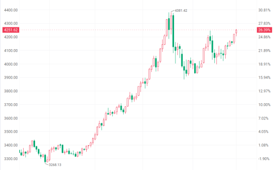 黃金市場同樣獲得機構(gòu)投資者強烈看好。今年至今,金價已累計上漲約57%,是幾十年來表現(xiàn)最好的一年之一。這種上漲由一系列因素推動,如央行增加購買、通脹居高不下,以及投資者對美國經(jīng)濟實力和關(guān)稅問題的擔憂。