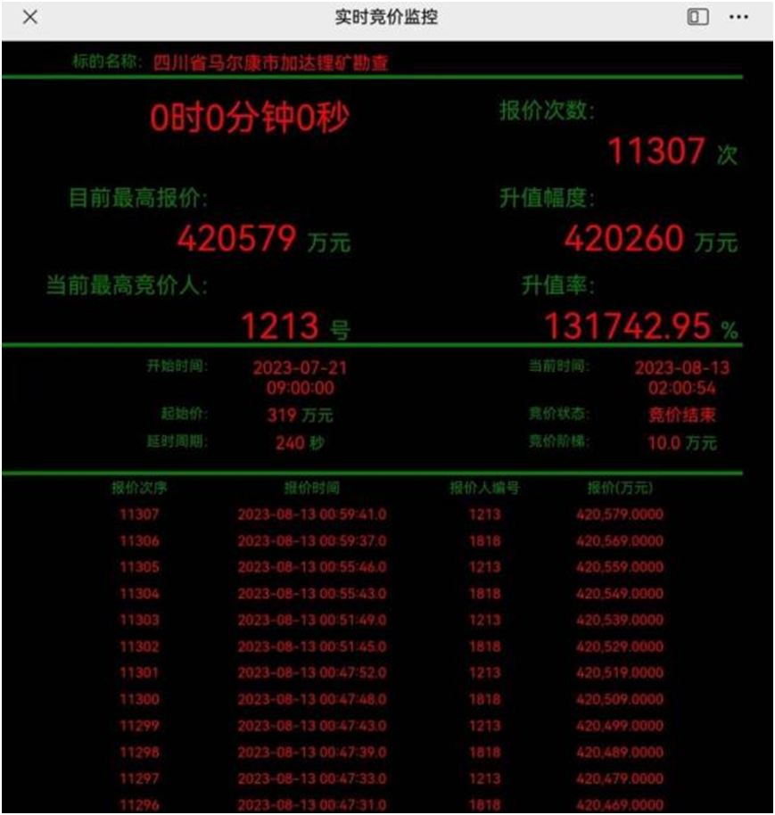 鏖戰三天三夜,四川省馬爾康市加達鋰礦勘探權拍賣塵埃落定,最終大中礦業力壓群雄拔得頭籌